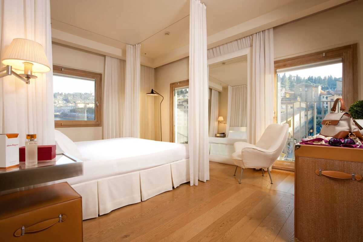 Owned by Salvatore Ferragamo, this chic riverside retreat combines modern elegance with a warm, welcoming ambiance. The rooftop bar offers panoramic views over the Arno, and yoga sessions on the terrace add a wellness touch to your romantic escape.